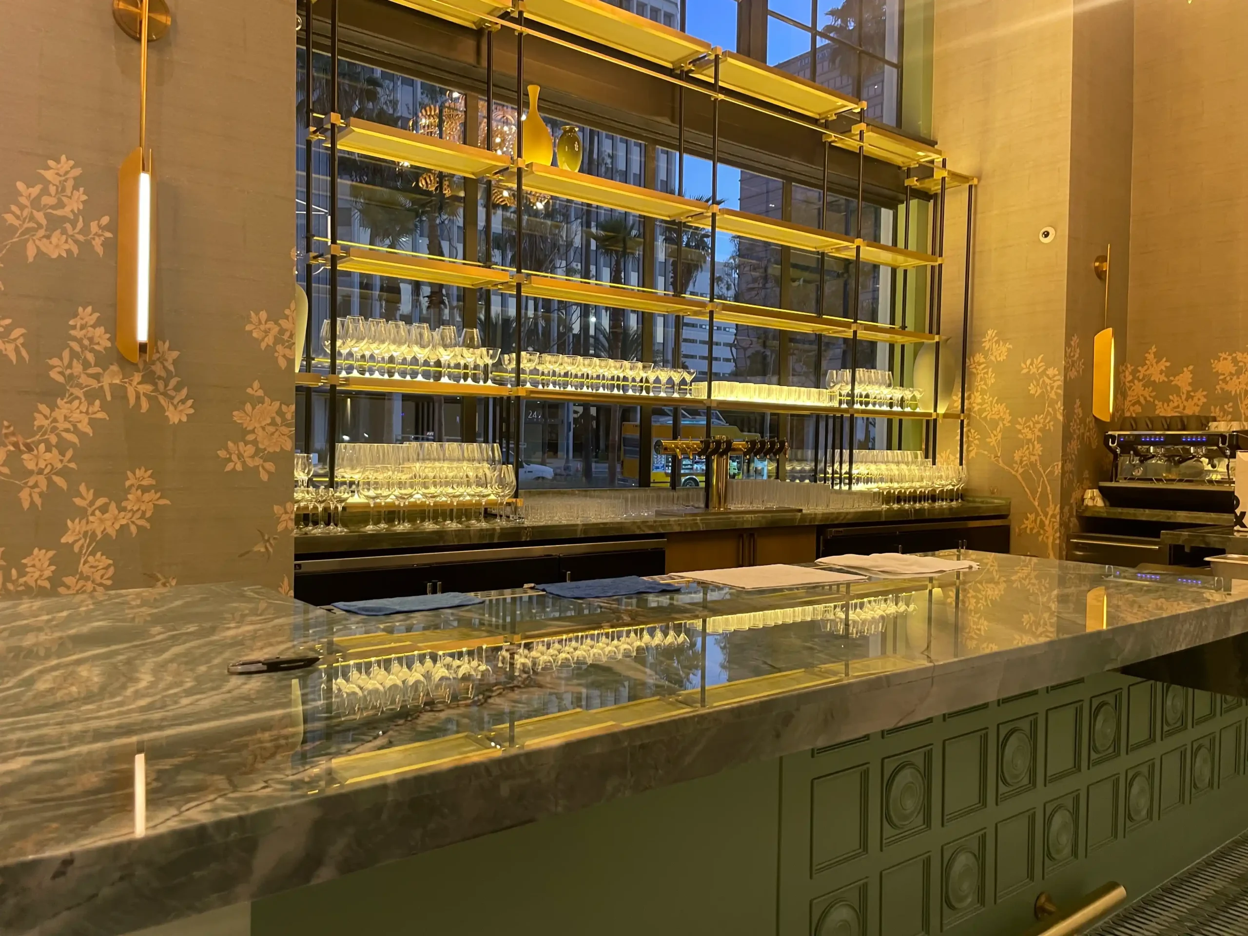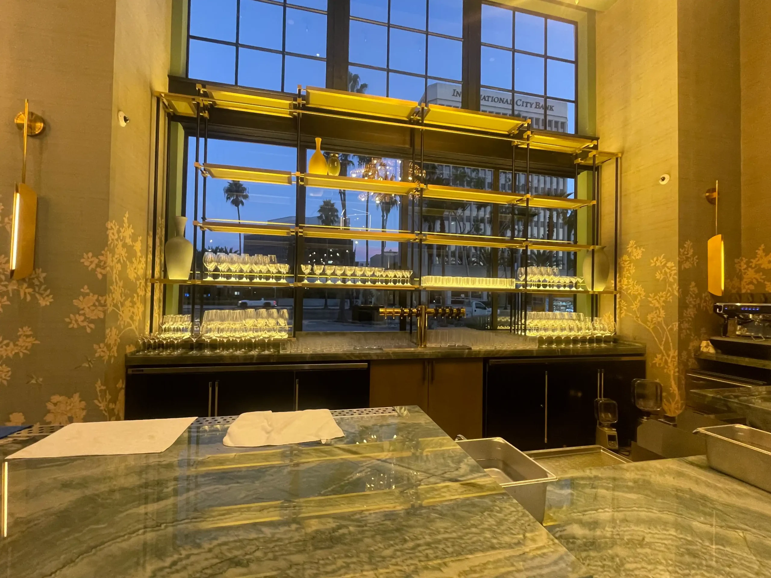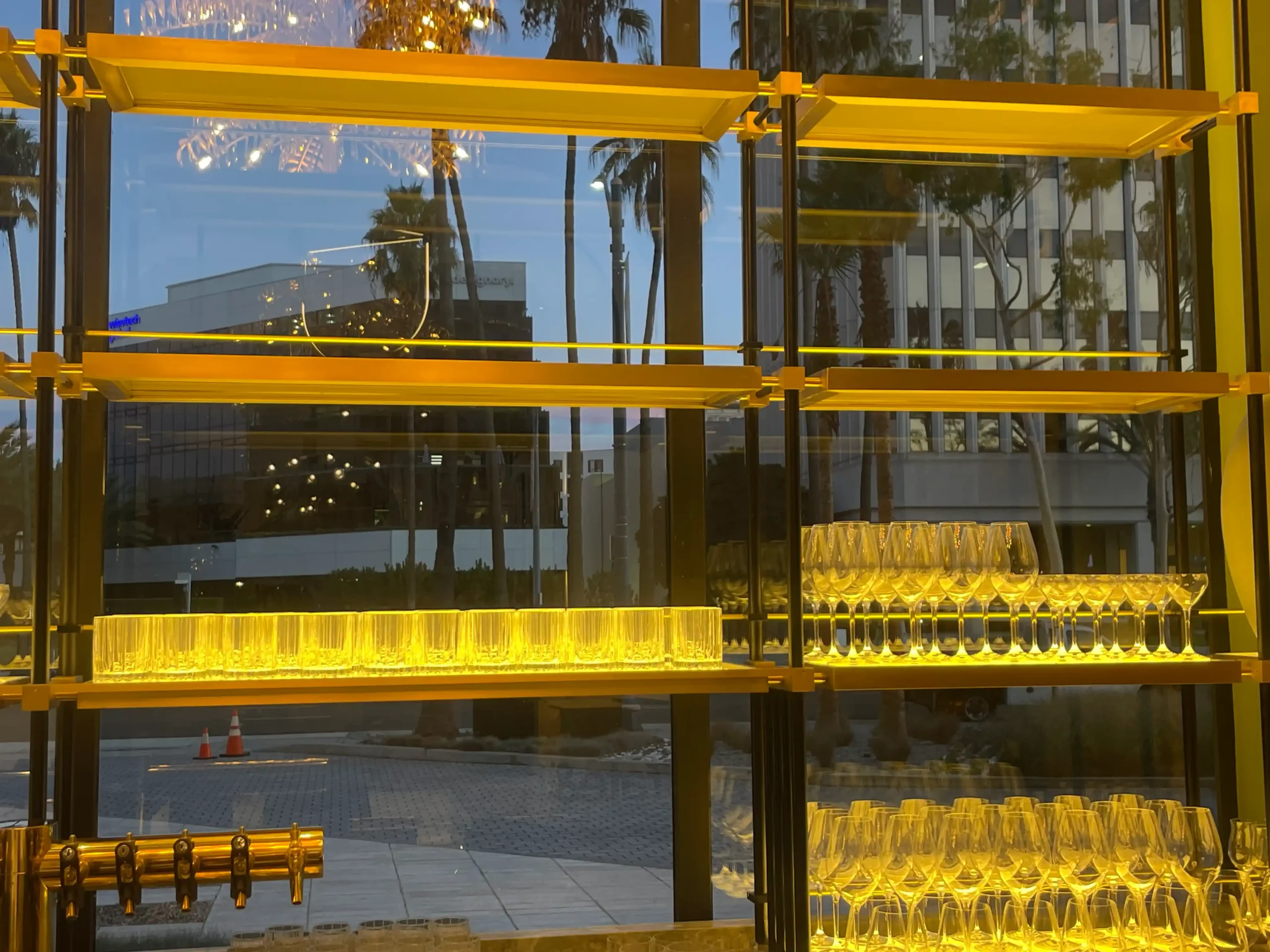 Welcome to the stunning lobby bar, a centerpiece in the heart of this remodeled hotel. This bar features revolutionary fully adjustable shelving, allowing you to customize shelf heights over 12 feet to suit your individual display needs.