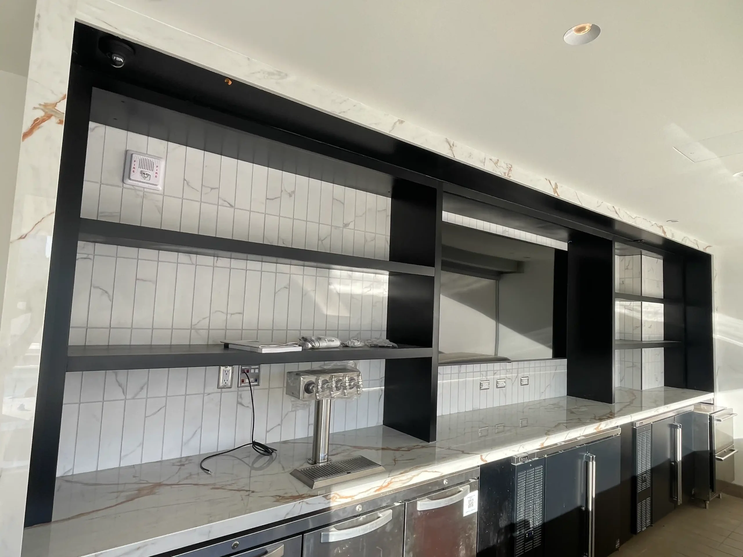 Introducing a versatile swimming pool bar designed for outdoor use, crafted from durable blackened cold rolled steel. This contemporary bar features protective coatings to ensure resilience against outdoor elements, making it an excellent choice for poolside gatherings.