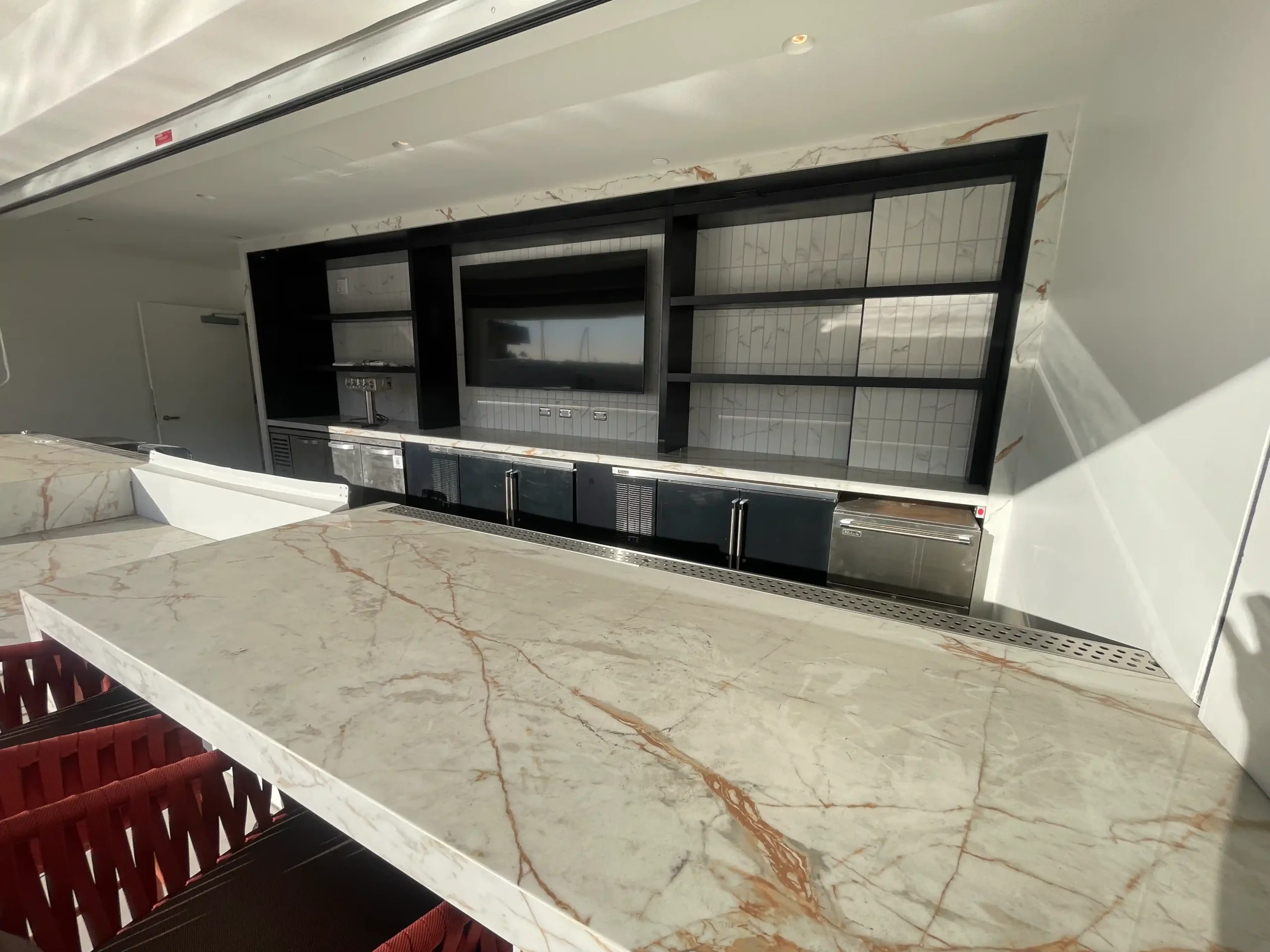 This swimming pool bar combines functionality and style, making it a perfect addition to any outdoor space. Whether you are hosting a party or simply relaxing by the water, this bar enhances your outdoor experience with its modern design and practical features.