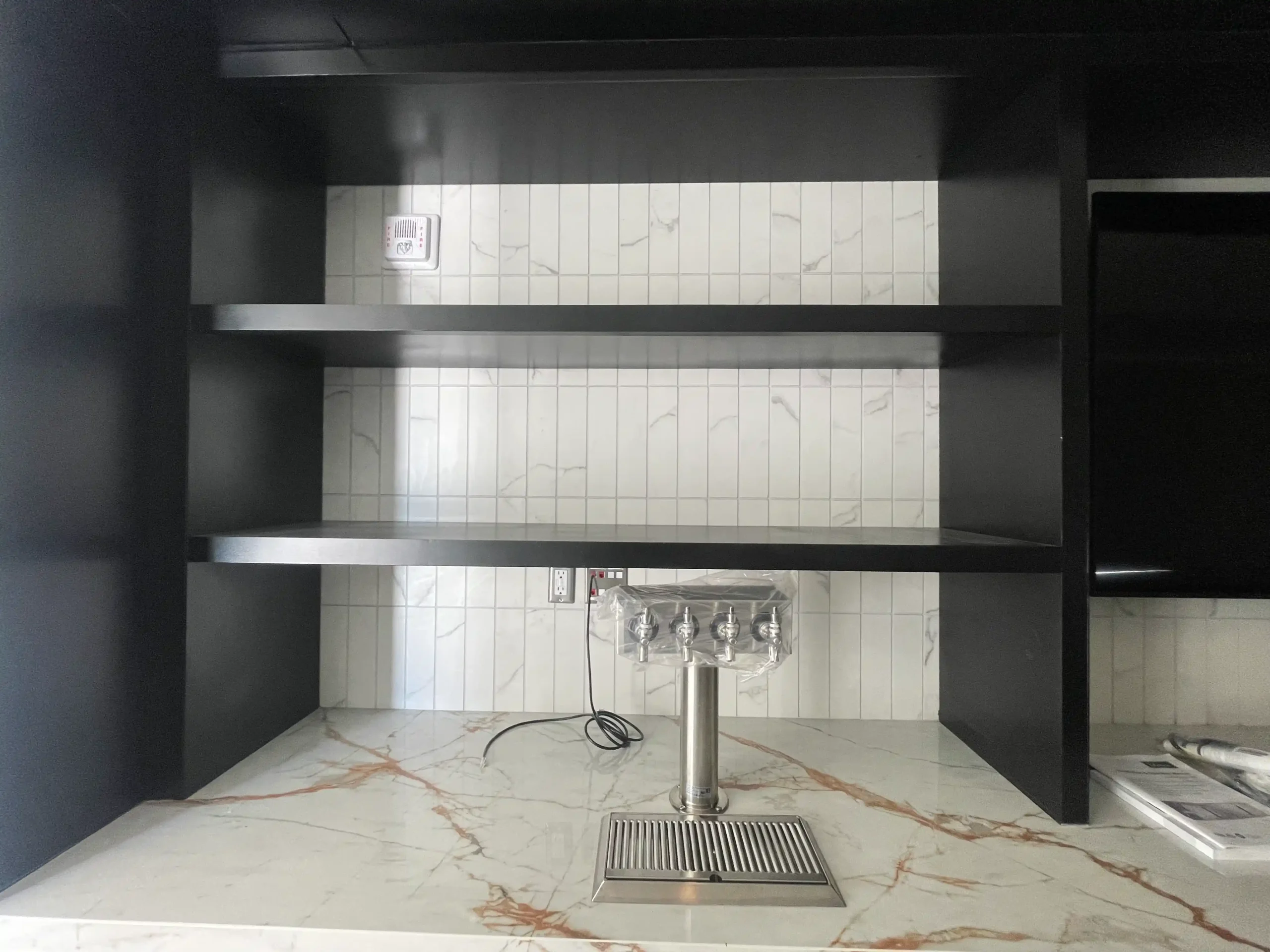The shelving unit is thoughtfully designed with ample space for glasses, bottles, and decorative items, allowing you to create an inviting atmosphere. With adjustable shelves, you can easily customize the layout to accommodate various items, from cocktails to snacks, ensuring everything is within reach while you enjoy your time by the pool.