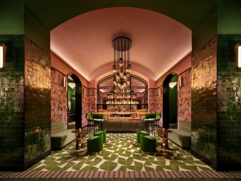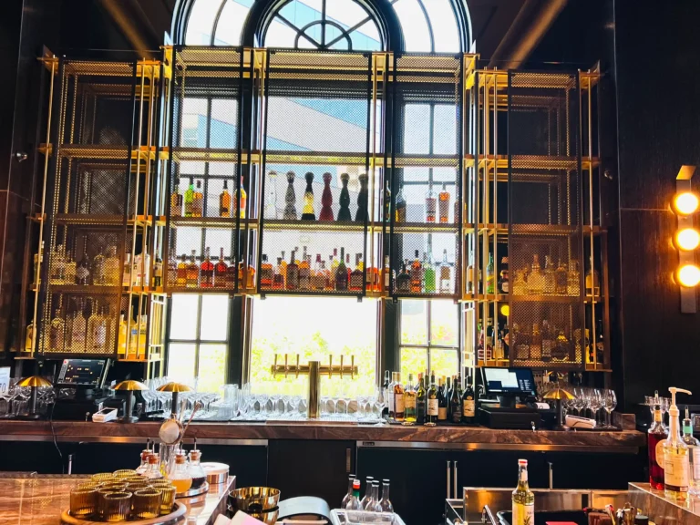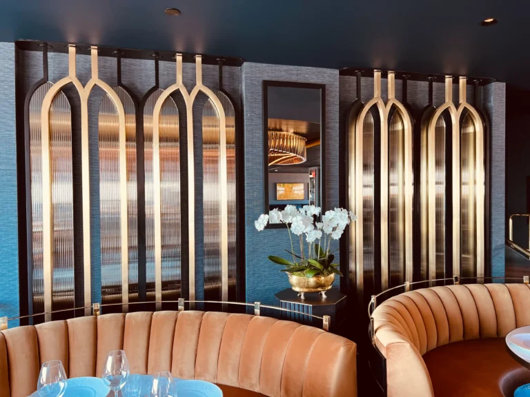 The SkyBar Deco Sculpture serves as a stunning architectural feature in the restaurant area, seamlessly blending modern design with the historical ambiance of the hotel. This sculptural screen is crafted