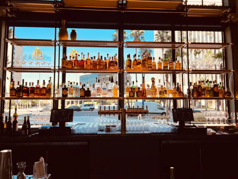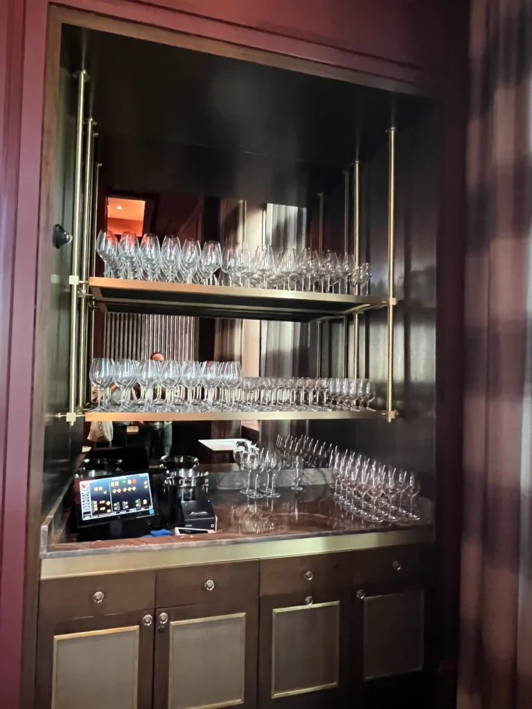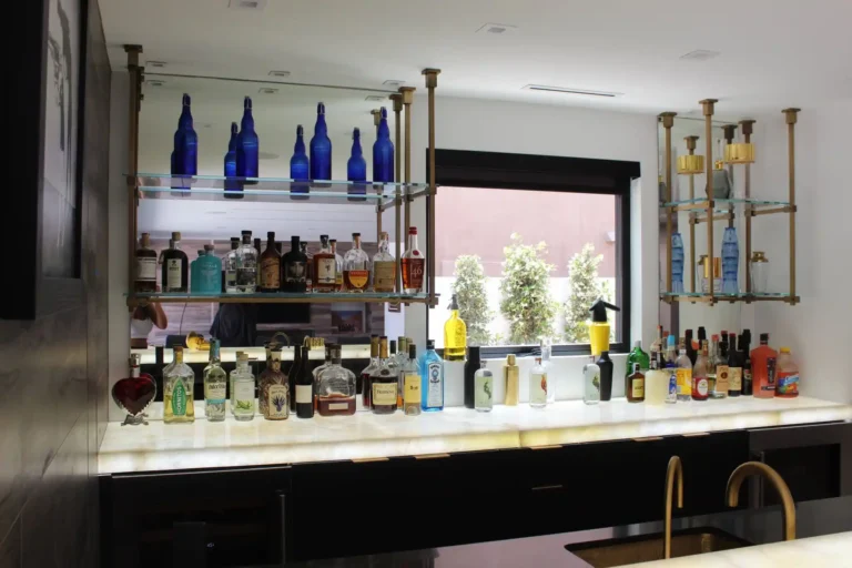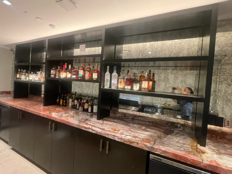 Welcome to the stunning lobby bar, a centerpiece in the heart of this remodeled hotel. This bar features revolutionary fully adjustable shelving, allowing you to customize shelf heights over 12